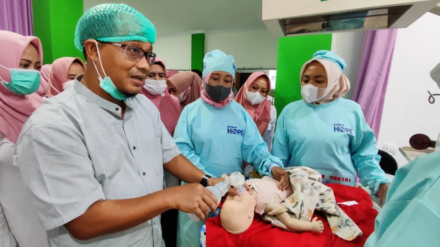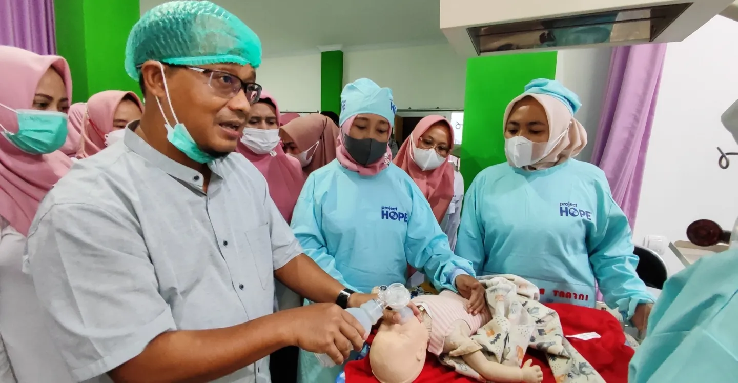 Project HOPE’s history in Indonesia dates back to the S.S. HOPE’s maiden voyage in 1960 when volunteers provided medical services and training. Over the past two decades, Project HOPE has worked across all regions of Indonesia to strengthen the health system, improve health worker capabilities, and save lives.