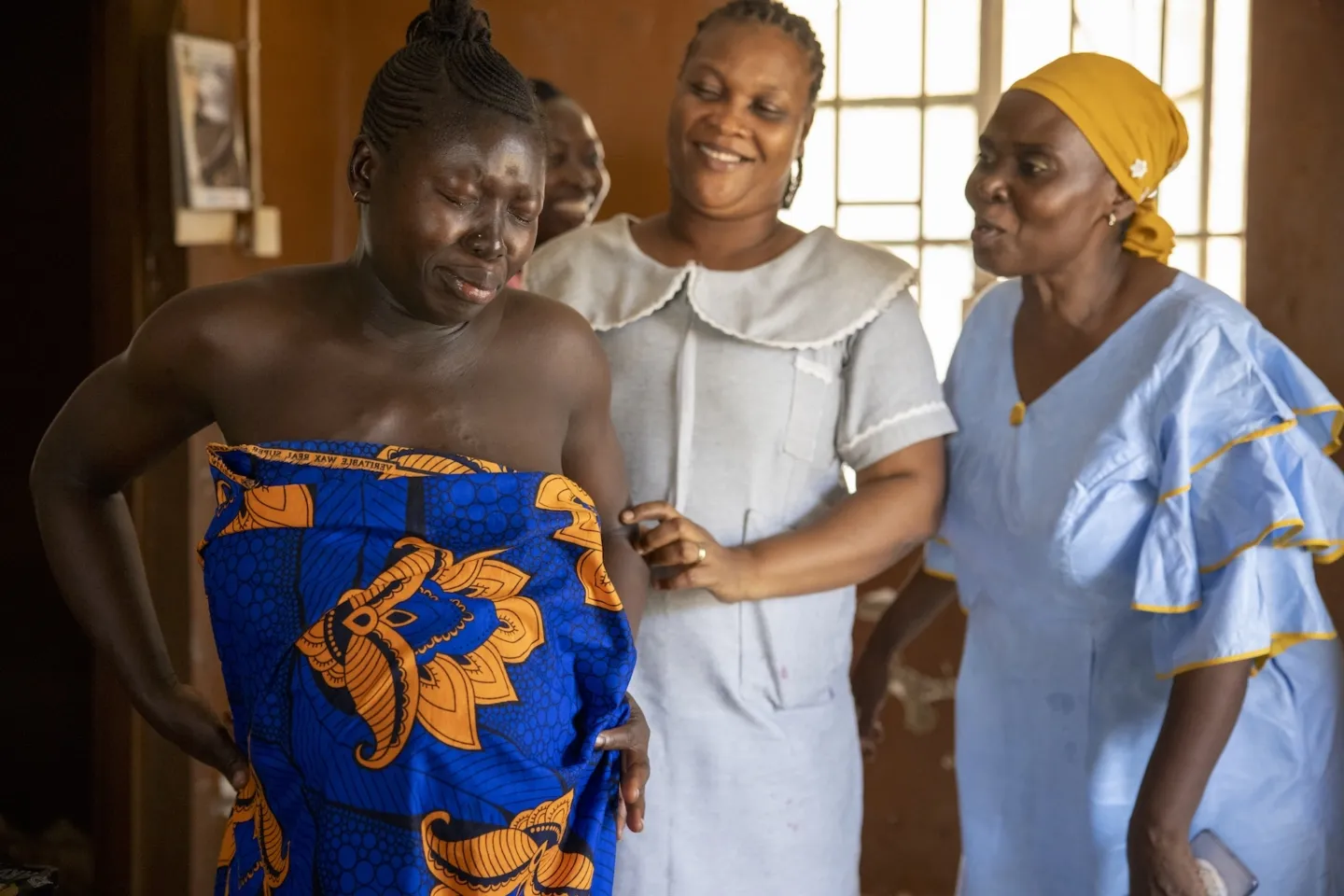 Midwives at the Lumpa Community Health Post in Lumpa, Sierra Leone encourage a mother in the early stages of labor. Project HOPE trained midwives at the facility in essential and emergency newborn care.